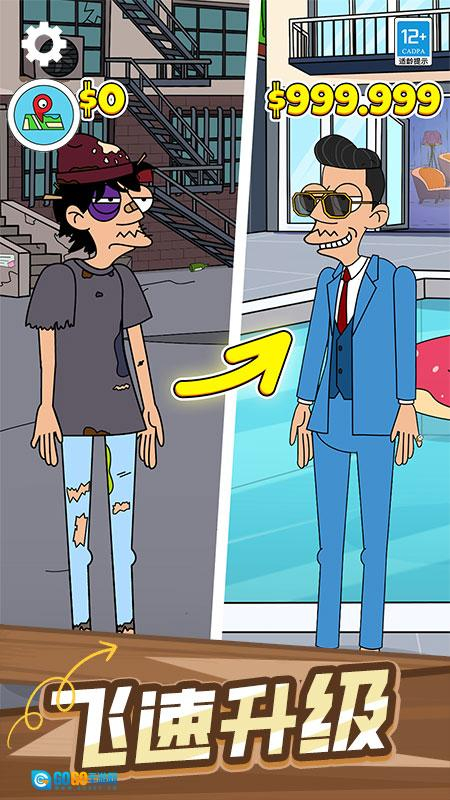1. 把挂机点击的轻松操作和生活模拟的剧情沉浸相融合,不用持续操作就能推动创业进程,还能同时体验主角从一介草根成长为巨富的蜕变。