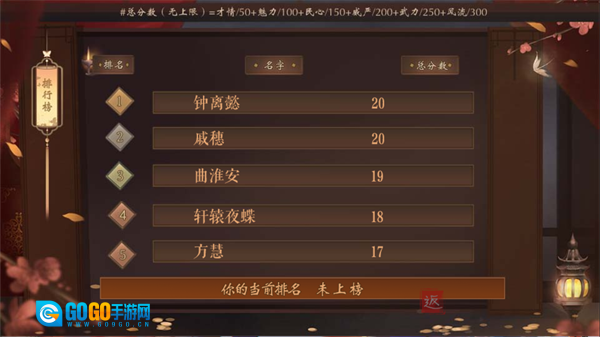 4、点击右侧的排行榜,玩家在此处能够查看自己参与打榜角色的排名情况。