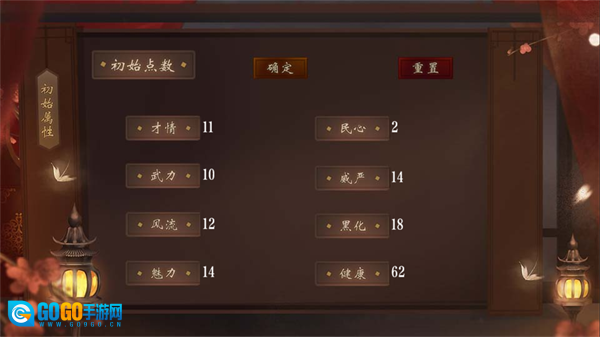 1、点击“开始游戏”,首次进入游戏的玩家能够自由刷新自身各项初始属性。