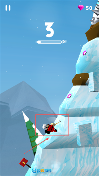 1. 操控斧头嵌入位置需点击屏幕,攀登过程要保持稳定节奏,还要灵活应对突然出现的障碍。