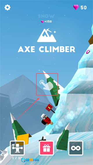 3、轻点屏幕,操控角色挥动斧头,完成攀爬动作。在此过程中,需精准掌握时机,把斧头嵌入冰面裂缝,从而实现稳步向上攀登。