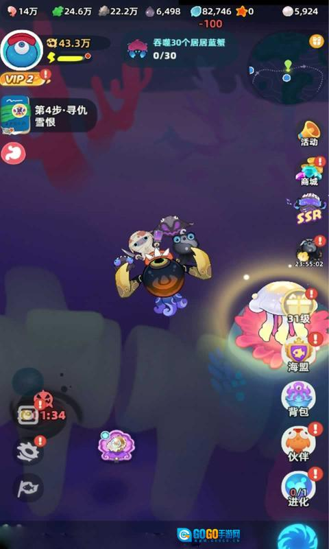 1玩家的冒险之旅起始于最基础的海洋微生物,凭借吞噬与进化,一步步成长为深海食物链顶端的主宰者。