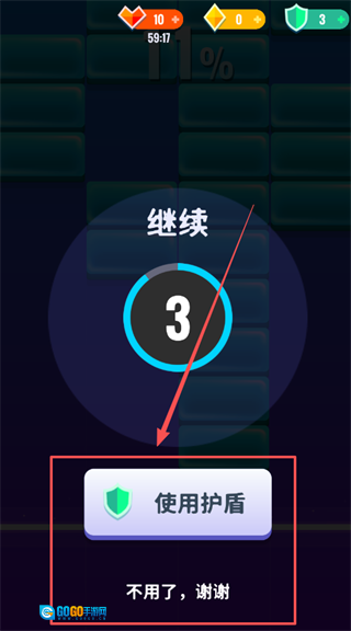 3、如果失败了可以使用护盾,或者重开。