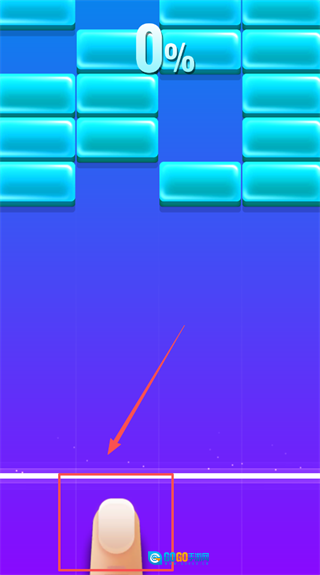 1. 轻点屏幕上的四条轨道来发射砖块,达成整行消除的目标,同时避免砖块越过白线。