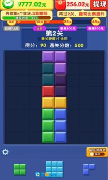 闯关我更强属于一款方块消除类的闯关游戏。在游戏里,玩家通过拖动方块来实现消除操作,要是能成功通关,就能拿到红包奖励。具体玩法为,玩家得把各种不同形状的方块拖到恰当的位置上,一旦方块形成整行或者整列,便可以消除。