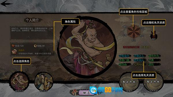 玩家在游戏开局时能够挑选可使用的角色以及与之对应的先天资质,点击左下角的角色头像就能刷新资质列表。