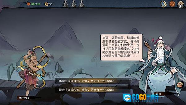 在游玩过程中,我发现角色的生命值恢复只能通过界面选项来实现,从未在卡牌中见过任何具备治疗效果的牌,因此一直以为游戏里不存在主动回血的能力。然而在第一章的最终挑战中,面对黑白无常这对Boss时,我才意识到之前的判断有误——白无常拥有持续回血的技能,更棘手的是,只要其中一人还有一丝生机,倒下的同伴就能被不断复活。经过多次尝试后我才明白,要战胜他们必须采取同步攻击的策略,在有限回合内让两人同时失去战斗能力,否则就会陷入无限复活的死循环。