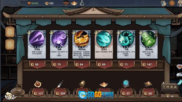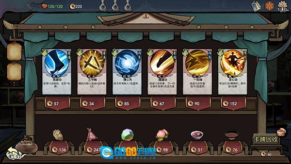 算盘图标对应的是商贩,在这里你能消耗金币购买卡牌、法宝、丹药,也可以进行卡牌回收操作。