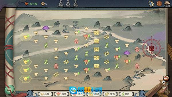 冒险的推进方向为自左向右,地图上的各个标识均对应着不同的事件类型。