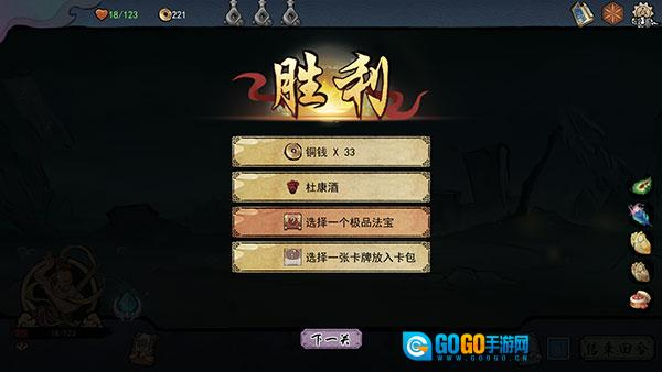 每次战斗获胜都能得到随机奖励,像铜钱、卡牌、丹药之类的。