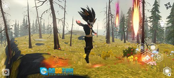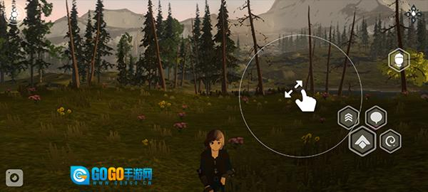 操作界面的左侧区域用于调整移动方向,右侧通过滑动操作可以切换观察角度,不同的视角会呈现出各异的场景变化。此外,右侧还设有多个功能按钮,涵盖了快速突进、向上弹跳等操作选项。