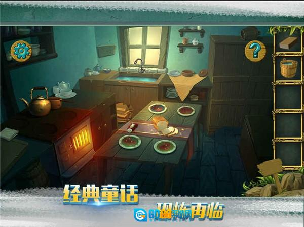 把食物搁在窗外,就会有鸟儿飞过来,点击它的腿就能拿到扣子,再把扣子安到外面的姜饼人身上。