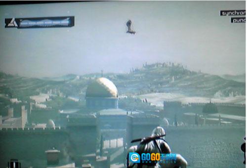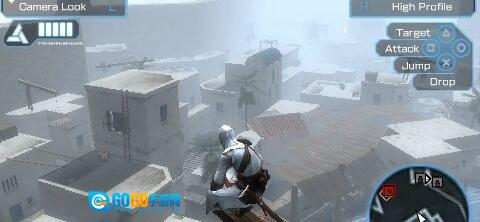 解决掉他之后,就按照地图的指引一路跑,跑到城墙边时,阿泰尔又使出了他那标志性的“耍宝”绝技——跳楼!这样就能顺利通关了。