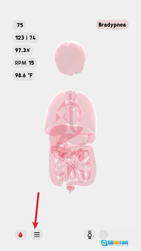 3、点击左下角的血滴图标,可以查看血液的具体情况。