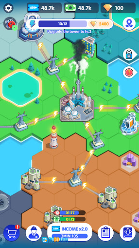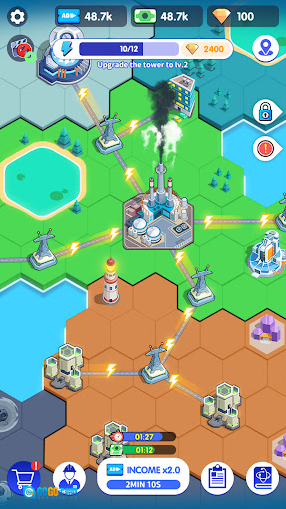 电力大亨2是一款休闲放置的模拟经营类型的游戏。玩家将以能源创业者的身份,从零搭建发电网络,不断的扩建规模打造自己的电力帝国。游戏中有多种发电模式可以去选择初期可建设风力、火力等基础发电厂,在之后还能够解锁太阳能、水力、核能等发电,玩家只需点击土地消耗钞票就能建设电厂,建好后连接电厂与总部,就能通过发电获取收益。游戏中还设有各种任务,完成后可以获取相应的收益。