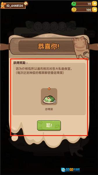《爆炒江湖》里的厨师技能丰富,不仅会采集食材、烧菜,在烧菜时还可以和你唠唠嗑,让你在干游戏时不会孤单,提高厨师的技能,就需要给厨师升级和进化,厨师进化到二阶时会获得一个技能,厨师进化到三阶时可以装备一个厨具,这样厨师的做法技法提高,客户的满意度也会提升。