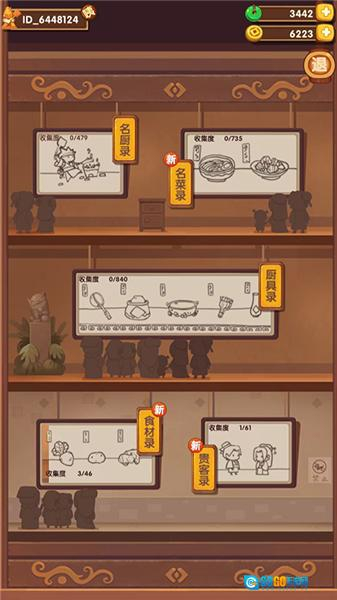 3、进入图鉴界面,可看到名厨录、名菜录、厨具录、食材录和贵客录,可以查看相应的详细说明,