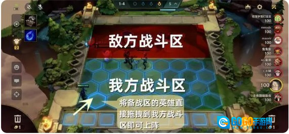 3. 上阵英雄,从备战区拖拽英雄到战斗区即可