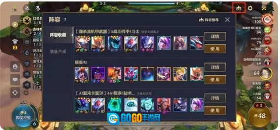 界面右上角设有阵容相关功能入口,点击后既能浏览当下受关注的搭配方案,也支持提前自定义配置。