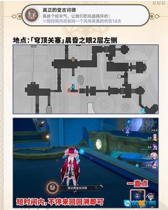 「真正的堂吉诃德」:前往「穹顶关塞」晨昏之眼2层左侧的风场装置,在短时间内来回回溯,将其状态改变10次就能达成。