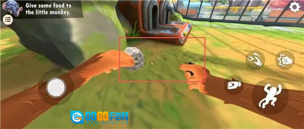 7.接下来需要给一些事物给这个小猴子,先来到这个石头旁,可以拿到一只虫子扔给小猴子,但它不吃。