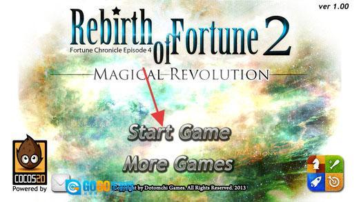 游戏的启动界面上,呈现着“Rebirth of Fortune2”与“MAGICAL REVOLUTION”的字样,点击“Start Game”即可开启游戏,此外还有“More Games”这一选项。