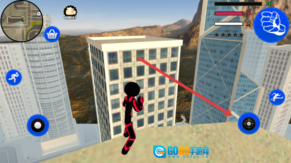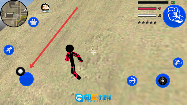 使用左边的虚拟摇杆来控制角色的移动,右边的按键可以释放不同的技能,比如拳头和绳索。根据箭头的提示,在野外的场景中熟悉这些操作,从而积累更多的战斗经验。