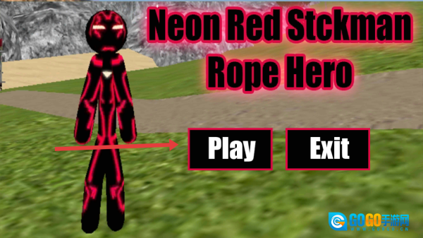 游戏启动界面中,点击【Play】按钮即可进入游戏,接着操控霓虹红火柴人,开启绳索英雄的冒险之旅。
