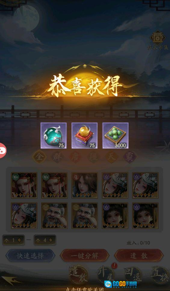 当玩家拥有多余的1-3星侠客时,可前往观星楼进行遣散操作。完成遣散后,玩家将获得进阶丹、侠客经验、侠魂等各类材料。