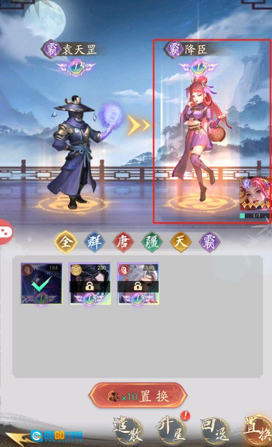 当侠客星升达到登封1阶后,即可通过置换操作获取所需侠客。不过置换存在一定限制:首先是阵营限制,群、唐、疆三个阵营的侠客可相互置换,天、霸阵营的侠客也能相互置换;其次是本体卡数量要求,置换对象需拥有7张本体卡才能满足置换条件。