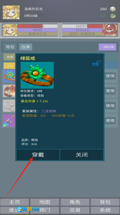 进入游戏就能直接开始,体验过程基本都是自动的,遇到好装备点击穿戴即可。