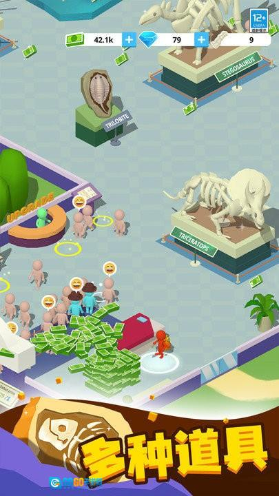 经营策略与个性定制:玩家需制定恰当的经营策略,以此吸引游客、升级展馆并提升门票价格;同时,还能依据自身喜好与预算,自由规划博物馆的布局及设施,打造出独具特色的恐龙化石博物馆。