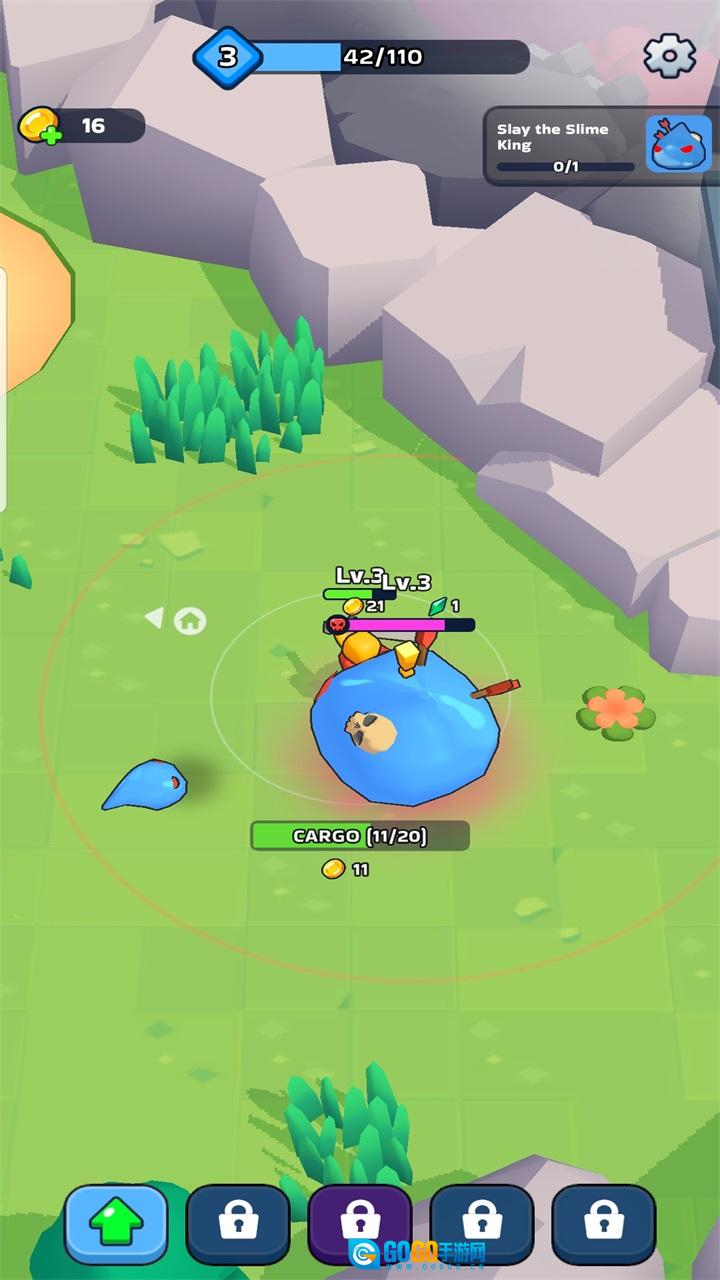 当等级提升至三级时,我们就必须去击败第一只boss级怪物——史莱姆王。