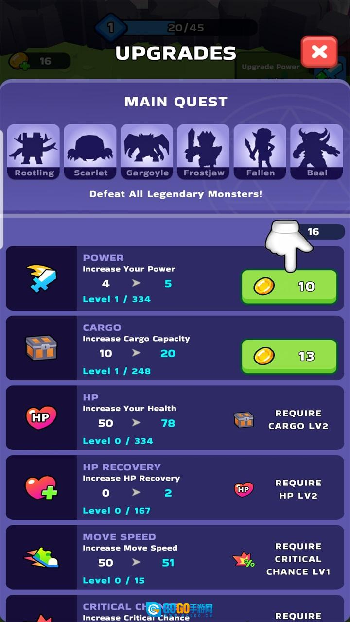 对英雄的攻击力,宝箱,血量等属性都能进行升级。