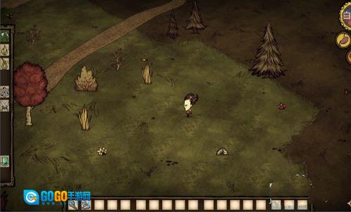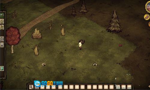 前期收集草、树枝、木头各一组就可以沿着大路去探路,路上遇到燧石和石头可以顺手捡起来,看到浆果或者一些萝卜记得采集。