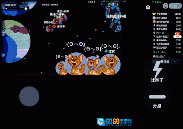 接下来就该主动出击了,局势已经在咱们掌控之中。这时候只要看到比自己小的球,直接吃掉就行。同时盯着中间那个最大的球,等它露出破绽,咱们就能抓住机会反杀一波!