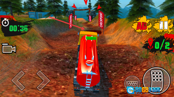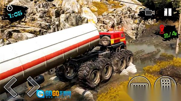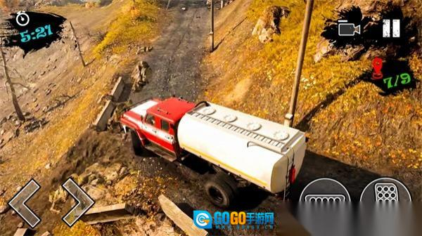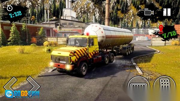 驾驶那辆红色的油罐运输车辆,在蜿蜒的山地跑道上,依照沿途设置的检查点标记来规划行进路线。