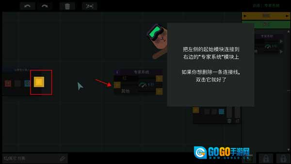 6、接着把左边的起始模块与右侧的“专家系统”模块连接起来。要是你想删掉某条连接线,双击它就行。