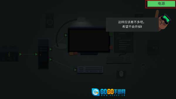 2、首先要做的是打开电源。找到闪烁的三角形图标,点击它并进行拖动操作,把电源插座分别和你的电脑、显示器以及键盘连接起来,之后点击“电源”按钮就能启动电脑了。