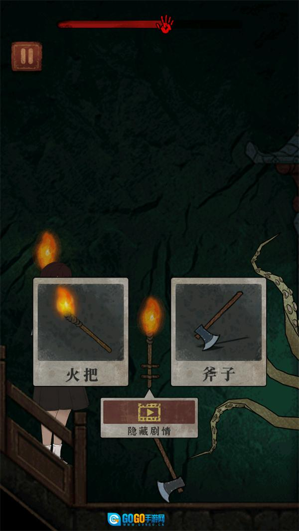 8、选择“火把",斧子砍不完触手,会被抓住反杀。