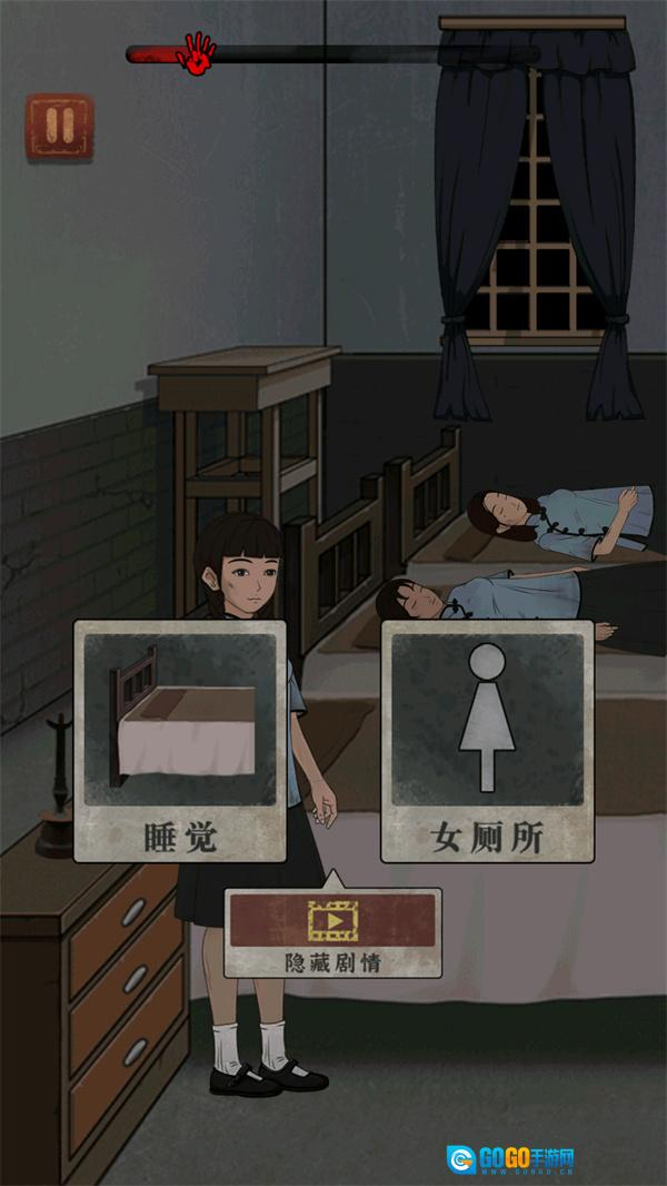 3、选择“女厕所”,直接睡觉会被怨灵掐死。