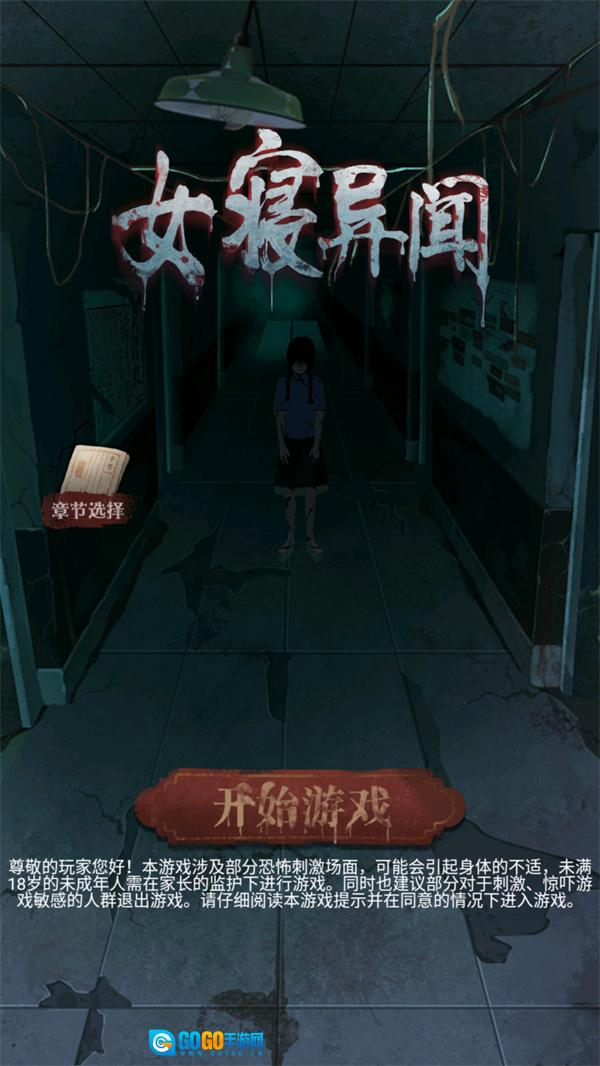 1、在本站下载并安装好《女寝异闻》后,打开游戏进入主界面,点击“开始游戏”按钮就能开始游玩。