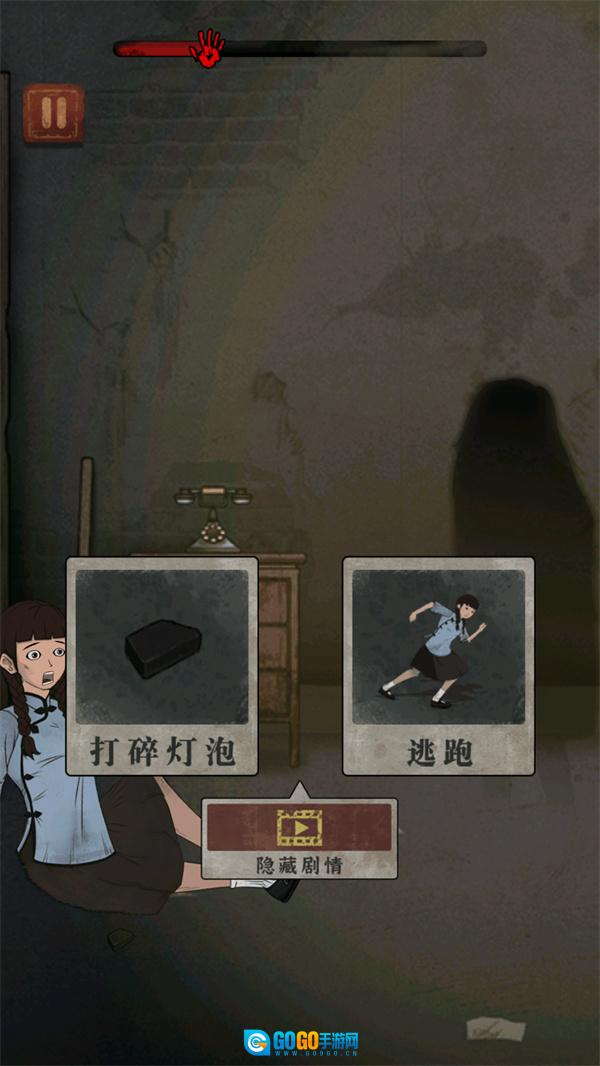 4、选择“打碎灯泡”,要是直接逃跑的话,是跑不过的,会被附身然后直接自杀。