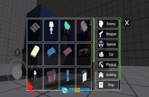 在场景布置时,需通过菜单进入“建筑”与“道具”分类板块,从中挑选合适的家具及各类物品进行摆放。
