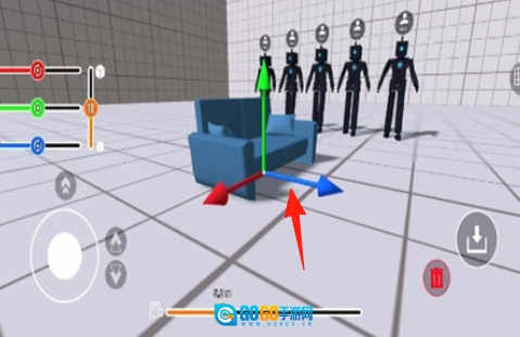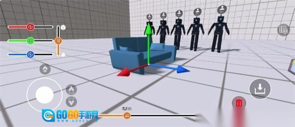 在场景搭建过程中,可放置沙发等建筑元素,借助坐标轴来调整它们的位置与角度;接着添加机器人角色,进而构建出自定义的关卡。