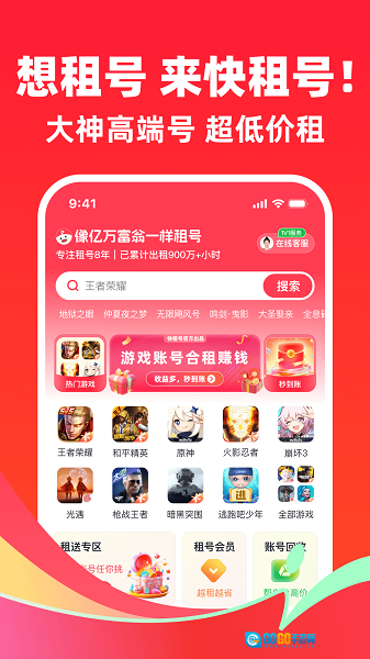 2、租赁流程:采用极简操作设计,选取账号-确认时长-线上支付三步完成,最低支持1小时起租,费用按分钟精准结算。
