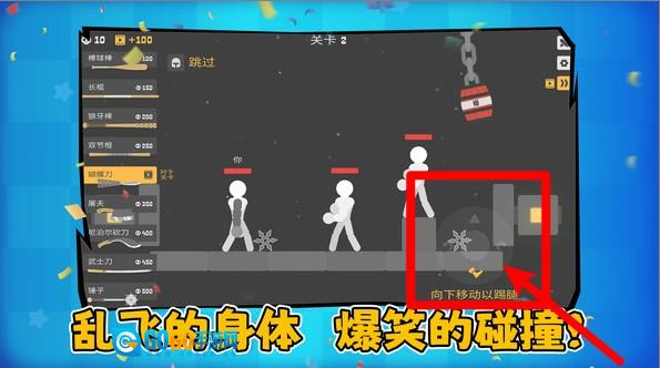 下滑踢腿操作:按照提示向下滑动屏幕就能触发踢腿攻击,借助脚部力量把敌人踹飞,从而产生强力打击的效果。