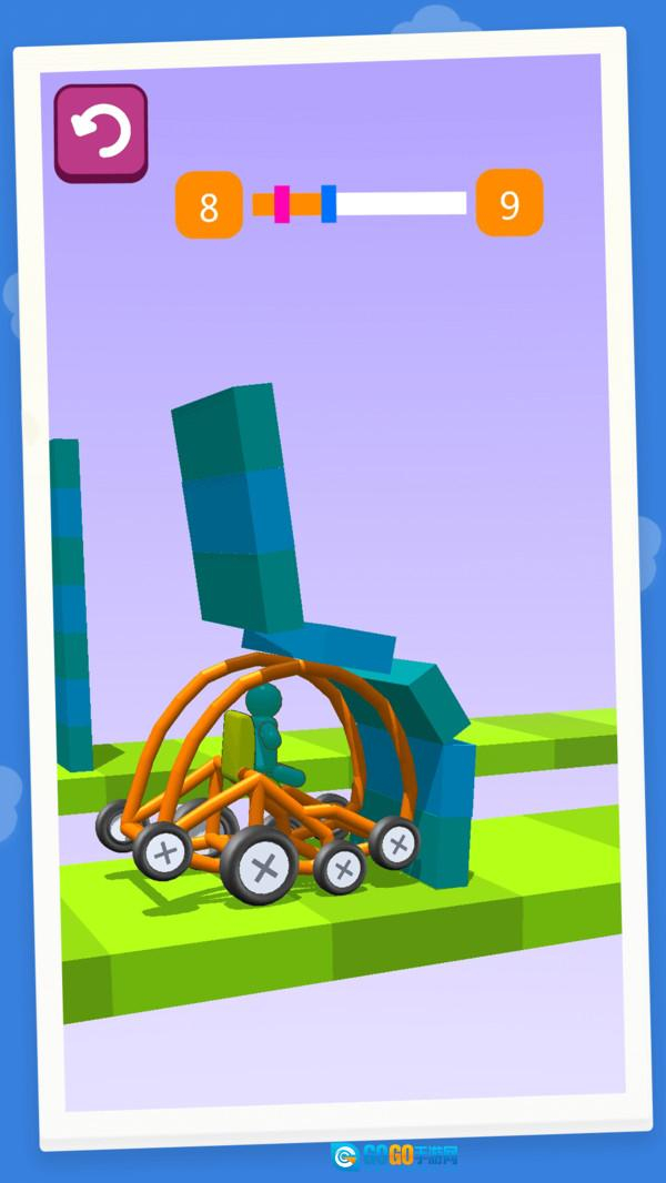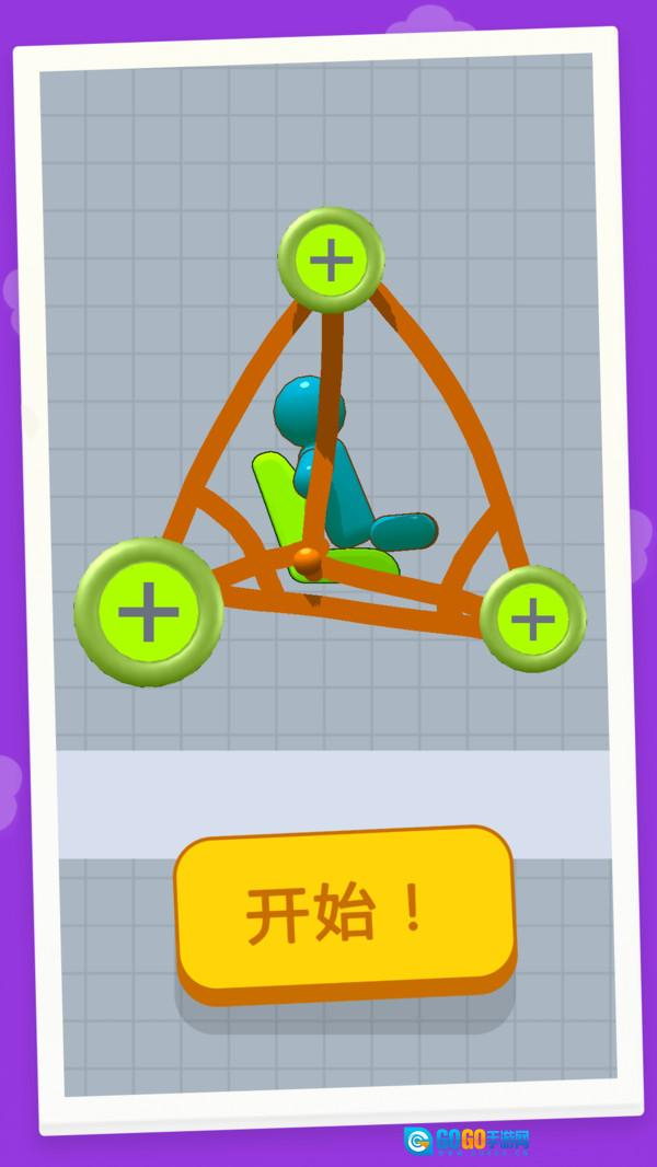 完成车辆结构设计后,点击“开始”按钮,就能进入关卡测试环节开展实战操作演练,通过观察车辆的实际表现来优化其结构布局。