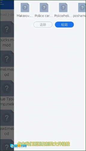 1、在第三方渠道好的模组,将文件使用“ES浏览器”打开,然后复制全部模组。