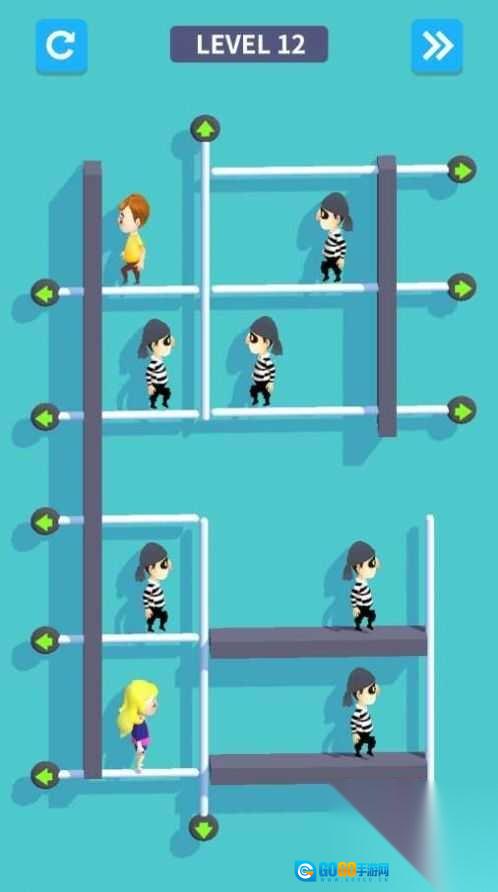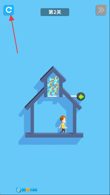 要是想重新来过,点击左上角那个蓝色的循环箭头图标,就能重置当前关卡,这样你就可以重新进行操作,进一步优化通关的步骤了。